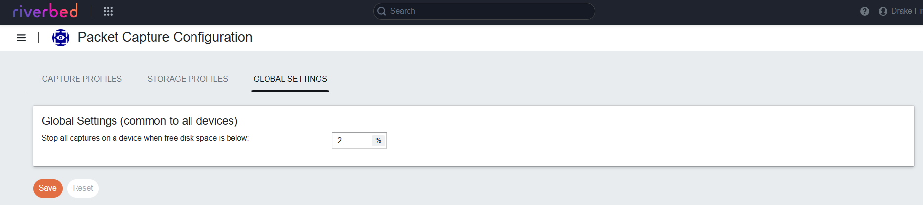 The module monitors disk space and if the percentage of free space falls below the setting, the Packet Capture Module will stop all captures. New capture attempts will fail until you free up disk space.