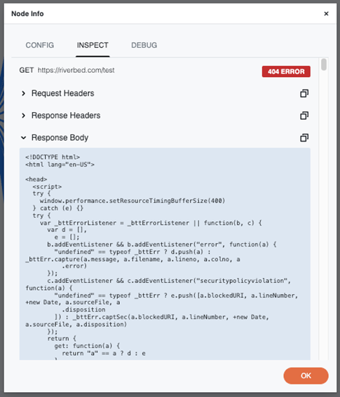 The HTTP node provides a specialized Inspect tab that displays formatted, structured views of HTTP request/response data. The Inspect tab displays data in a collapsible tree view format, with JSON data automatically formatted for readability.